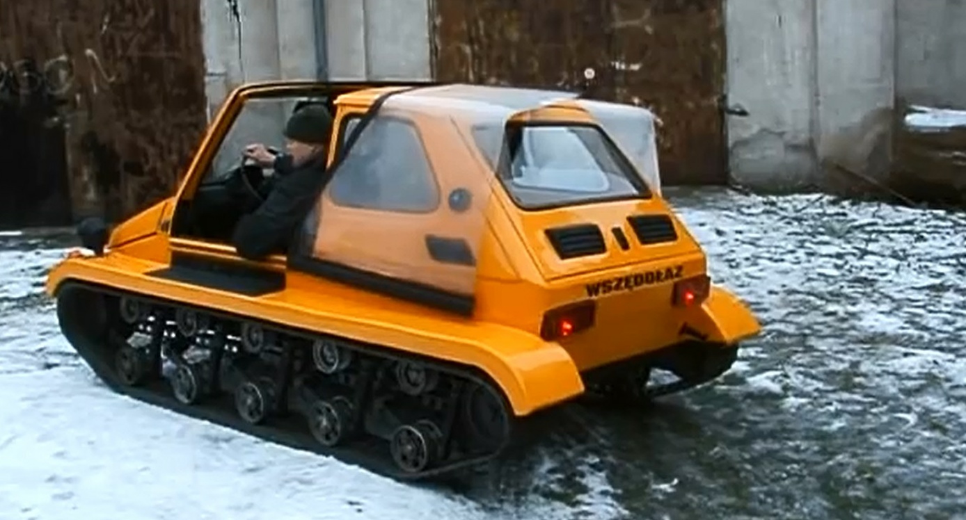 Впрочем, в Старом Свете есть коллекционеры, увлеченные не только оригинальными предками современных машин. Например, в Польше один местный житель восстановил итальянскую микролитражку Fiat 126P. Однако, вместо колес он решил установить на нее гусеничный привод и превратить автомобиль в некое подобие танка.